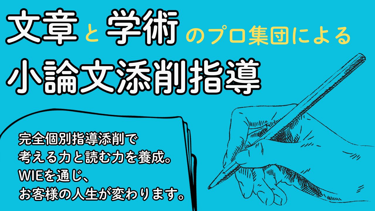 A.WIEでは、入試小論文を解く力とは、設問の要求を正しく理解し、課題文や資料があれば設問の要求に沿って分析し、設問に正しく対応する解答を書くことだと考えます。